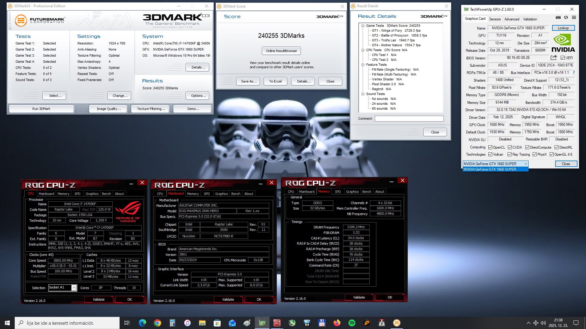 240255 markswith GeForce GTX 1660 SUPER@1950.00/1900 MHz