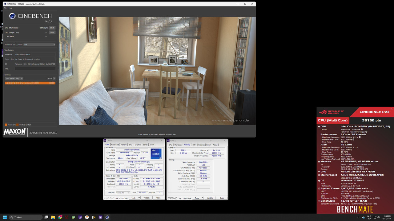 With BenchMate: Benchmark window, rendered scene & BenchMate score (BM) CPUZ tab for CPU and memory (V2.06+) |