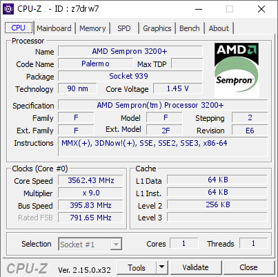 Model AMD Sempron 3200+ (Palermo) Palermo-128 Cooling Dry Ice Temperature Idle -72.0 °C Cores 3,562.43 MHz (+97.91%) REF 395 MHz Batch 0625AAC