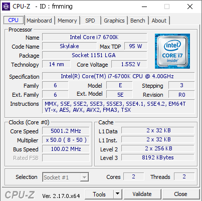 Intel Core i7 6700K @ 5002 MHz