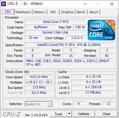 Model Intel Core i7 970 Gulftown Cooling AIO Water Temperature Load 75.0 °C Cores 4,152 MHz (+29.75%)