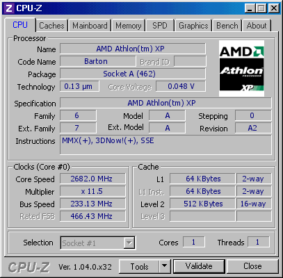 Athlon XP 2600+ (Barton)@2572.00 MHz