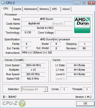 Model AMD Duron 1400 (Applebred) Applebred Cooling Air (Custom) Cores 2,004.46 MHz (+43.18%)