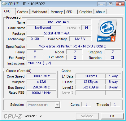 Model Intel Pentium 4-M 2.0Ghz Northwood-512 Cooling Air (Custom) Cores 3,000 MHz (+50.00%)